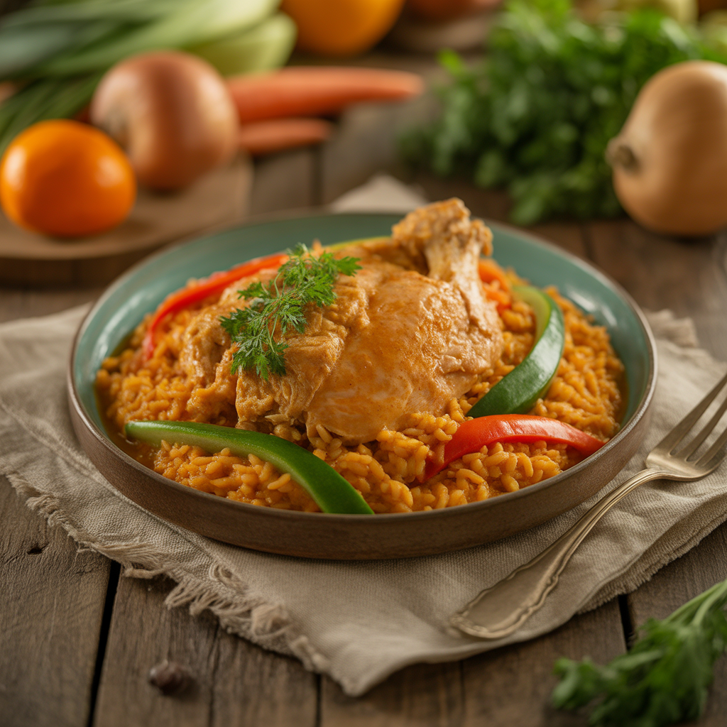 Arroz amarillo sazonado con pollo tierno, vegetales frescos y especias tradicionales. Una receta familiar que nunca pasa de moda.