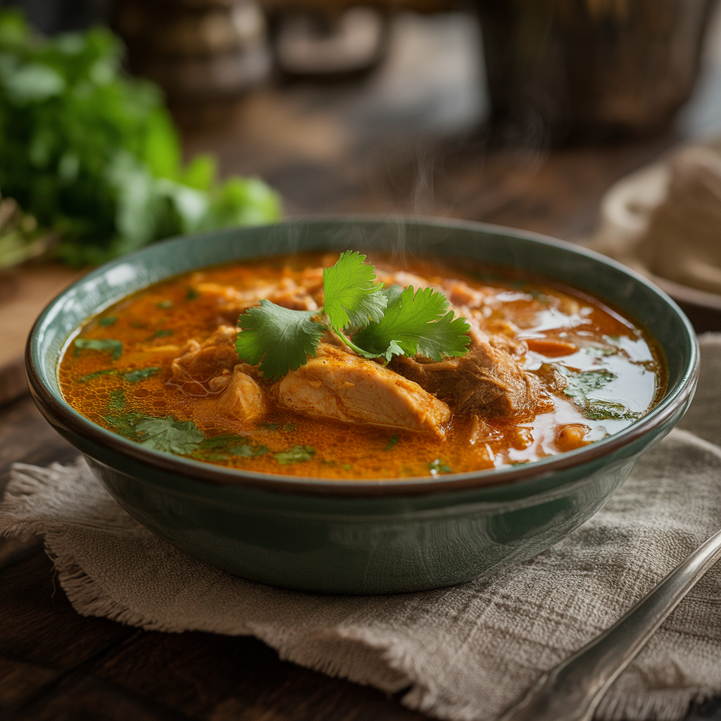 Sopa tradicional preparada con pollo, ñame, yuca y culantro, servida con arroz blanco. Un plato reconfortante que representa la esencia de la cocina panameña.